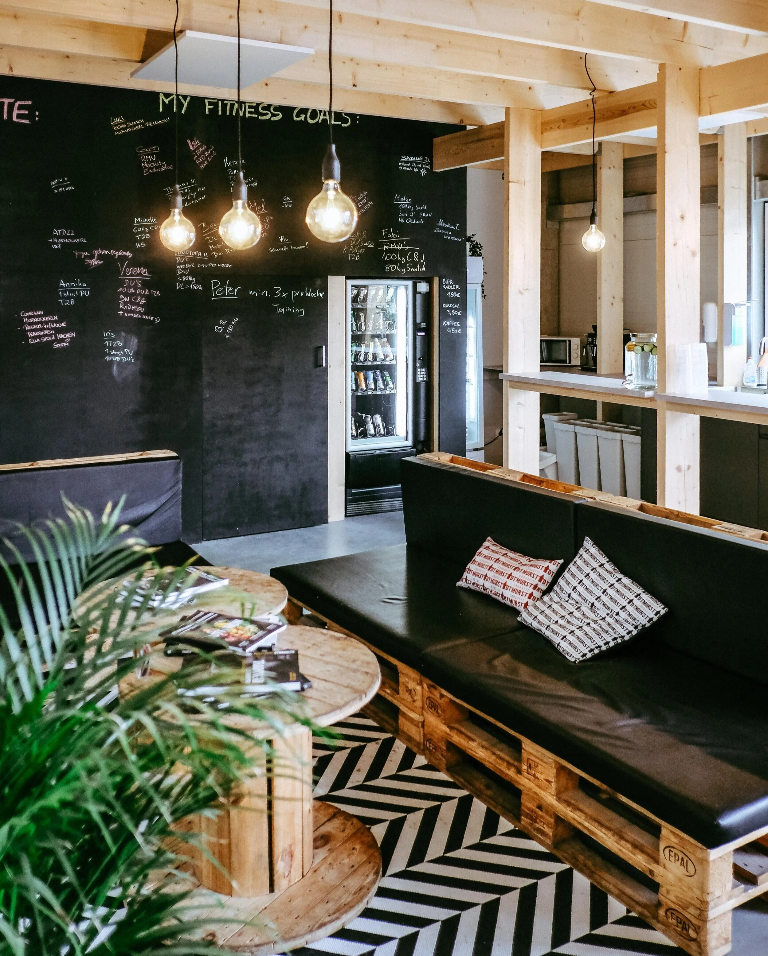 CrossFit lebt von dem Austausch mit anderen und dem gemeinsamen Schwitzen und Auspowern. Jeder ist willkommen und nach einem anstrengenden Workout ist das entspannte Plaudern noch gemütlicher. Unser brandneuer Gemeinschaftsbereich wartet auf Dich!